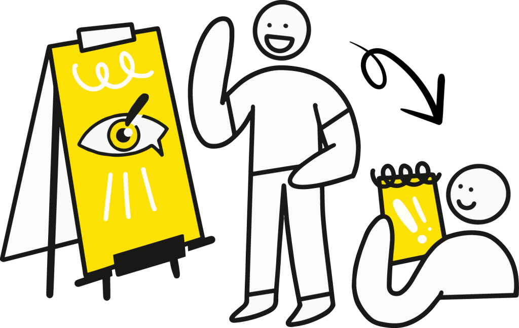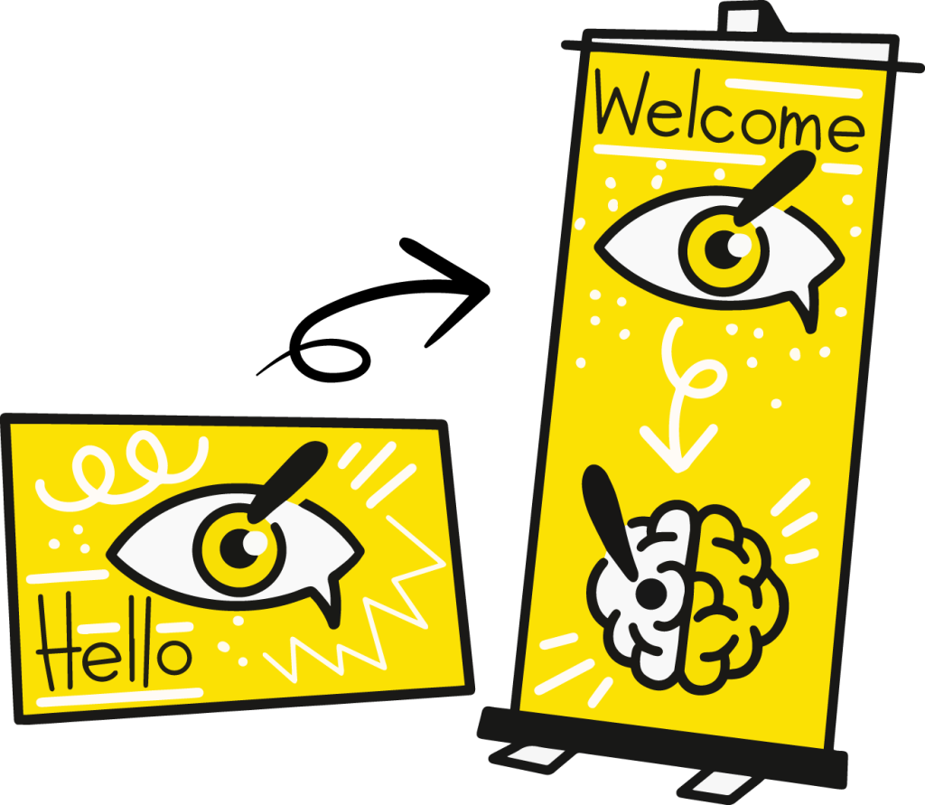 Presentaciones, tarjetas, roll-ups, foam o posters. Envianos el contenido y recibe una ilustración completa de lo que necesites a cualquier tamaño.