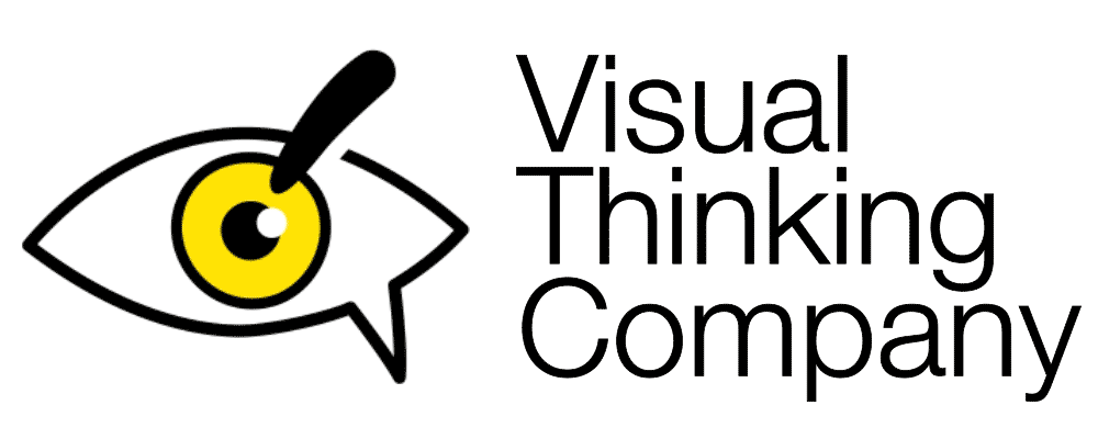 Un ilustrador profesional traduce los puntos principales de tus reuniones en un resumen visual sobre un panel de dibujo o proyectado en una pantalla desde un Ipad.